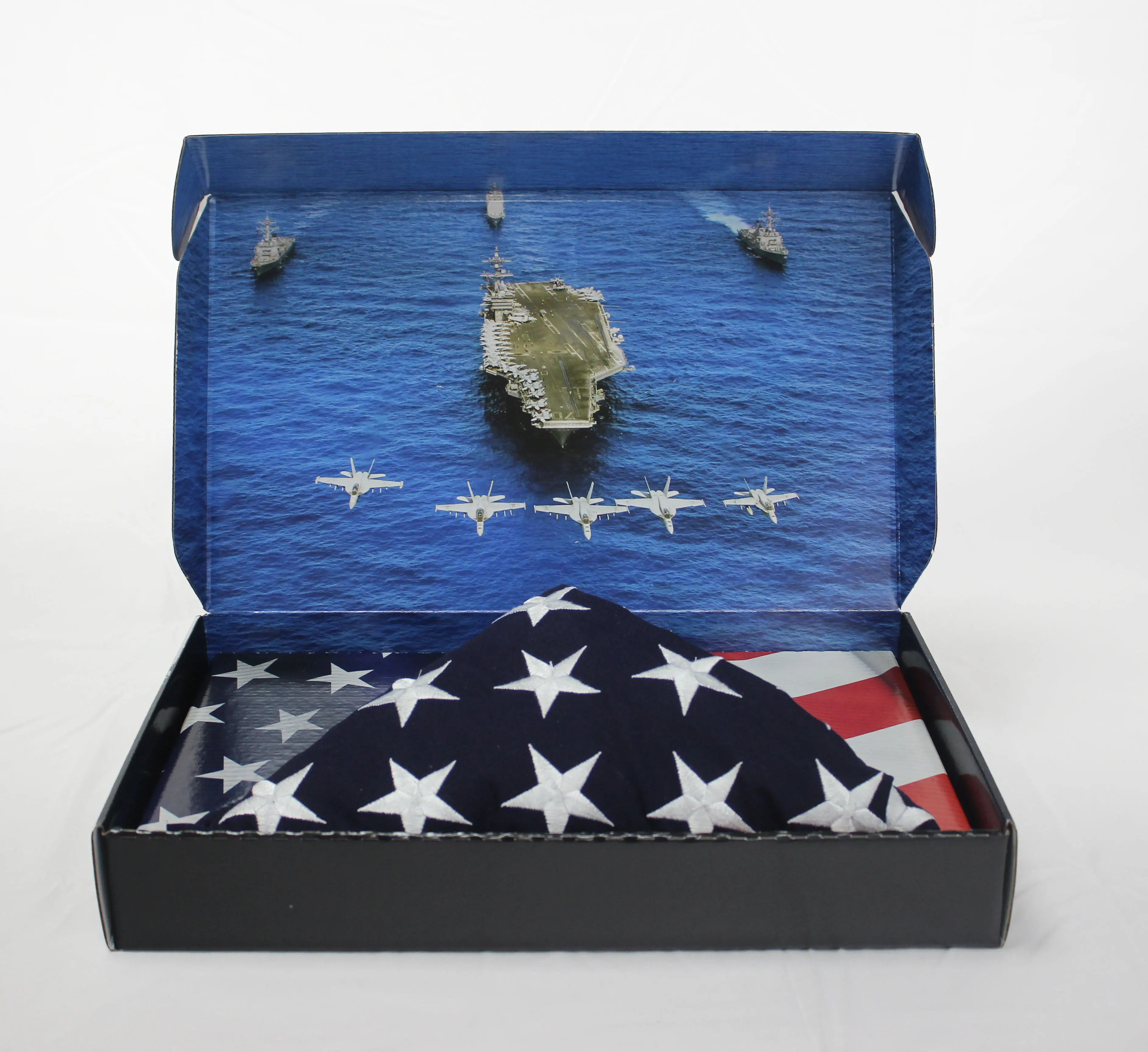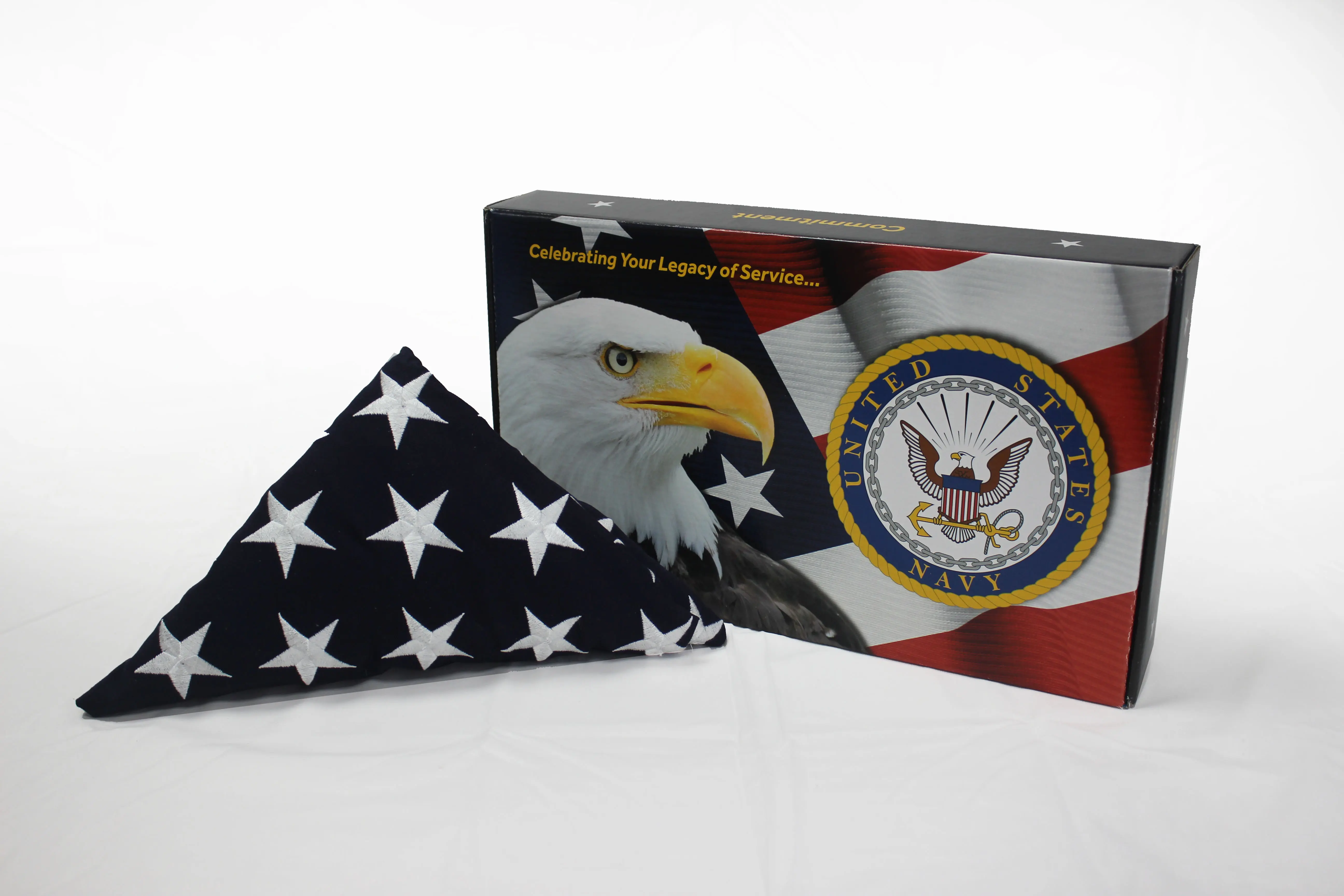 Each Military Flag Kit features a folded American flag in a branch-specific display box, handcrafted by veterans and AbilityOne workers at our nonprofit. A meaningful way to honor their service while supporting those who served.